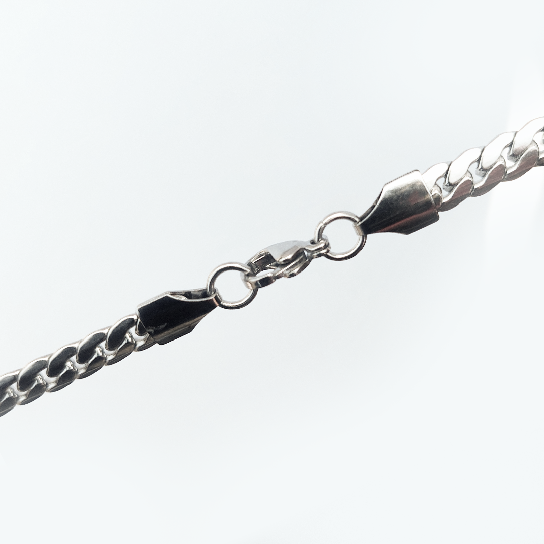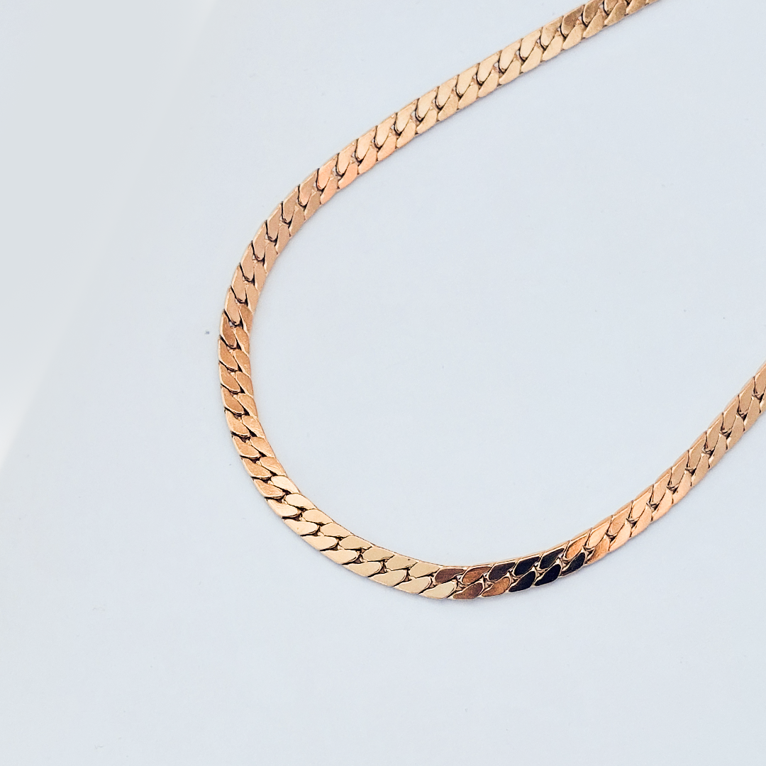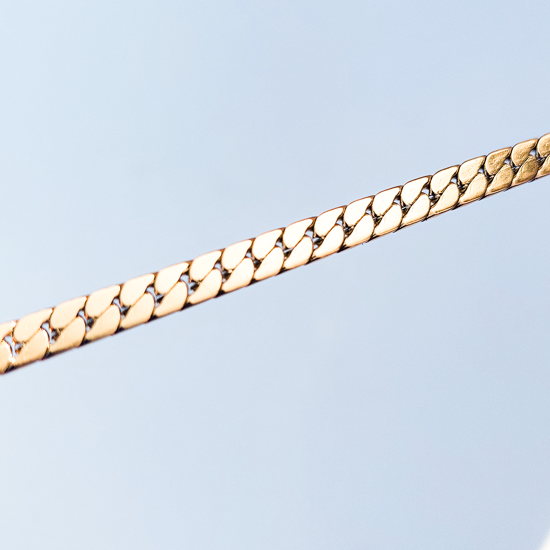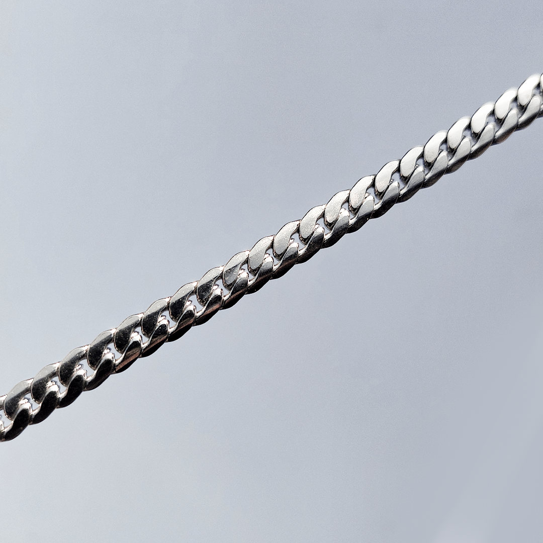 The Cuban Chain is an absolute essential for every wardrobe. Known for its flat, interlocking links, this necklace offers a bold yet sophisticated look that sits perfectly on the neck. It captures the light from every angle, giving off a brilliant shine without being overpowering.